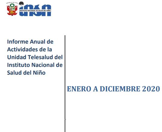Documento ENERO A DICIEMBRE 2020-INFORME ANUAL.pdf Fecha de Publicación Jue, 31/12/2020 - 12:00 Tipo Info Telesalud Telesalud Tipo Info Telesalud sub Informes