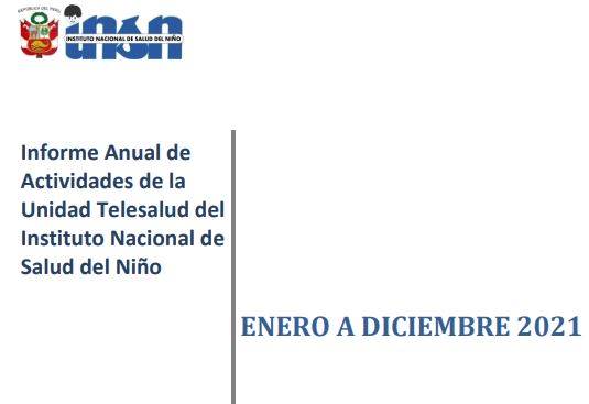 Documento ENERO A DICIEMBRE 2021-INFORME ANUAL.pdf Fecha de Publicación Vie, 31/12/2021 - 12:00 Tipo Info Telesalud Telesalud Tipo Info Telesalud sub Informes