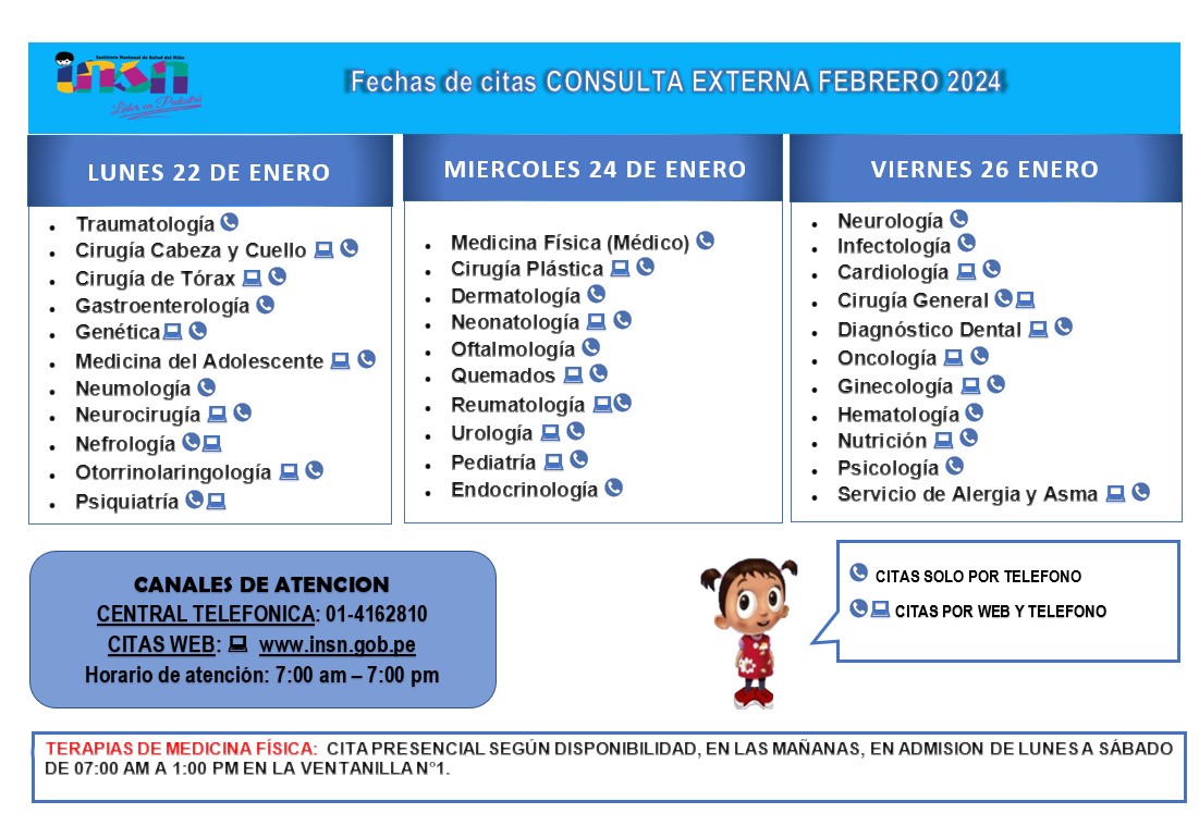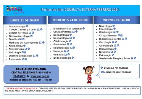 Tipo Comunicado Apertura Citas Descripción ¡Ojo! Lunes 22 de enero se abre citas de Terapia Física para Febrero 2024. Fecha de Publicación 16 Enero, 2024