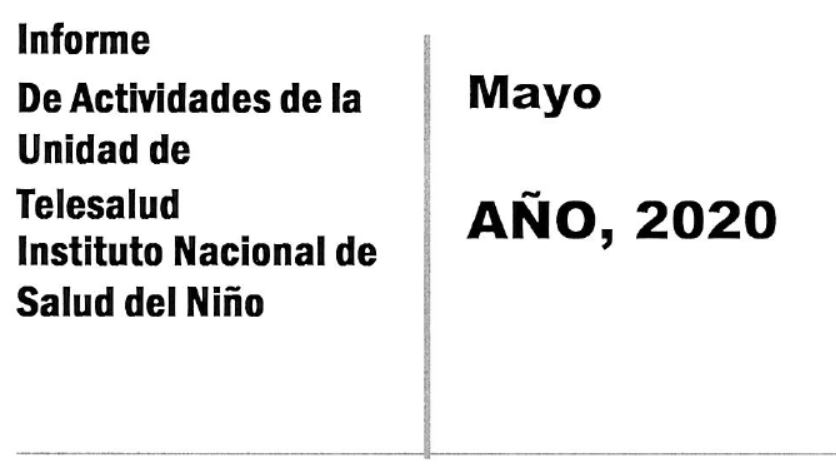Documento INFORME GESTION-TELESALUD- MAYO 2020 INSN-Lic. Gialina Toledo.pdf Fecha de Publicación Dom, 31/05/2020 - 12:00 Tipo Info Telesalud Telesalud Tipo Info Telesalud sub Informes
