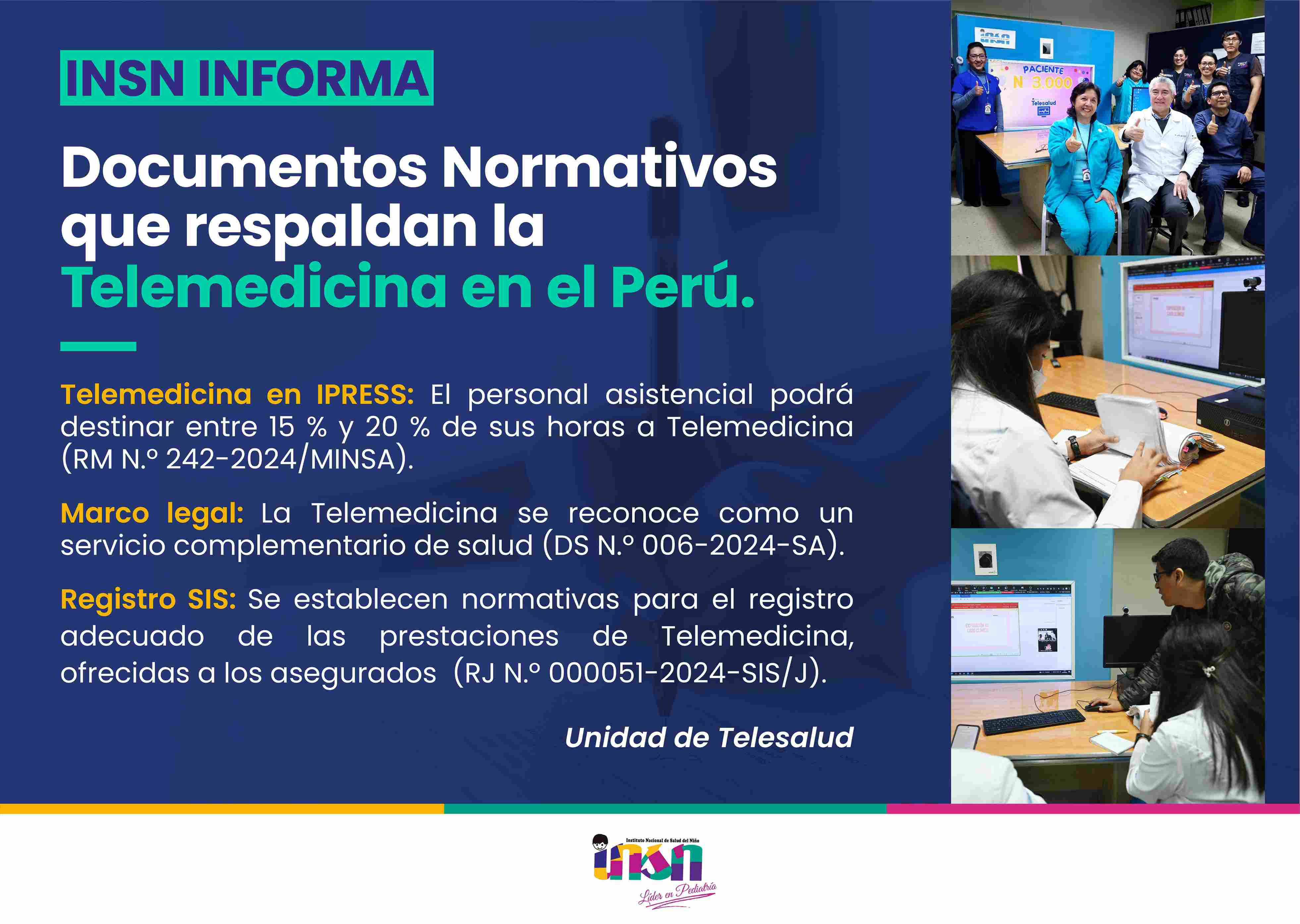 INSN INFORMA: DOCUMENTOS NORMATIVOS QUE RESPALDAN LA TELEMEDICINA EN EL PERÚ