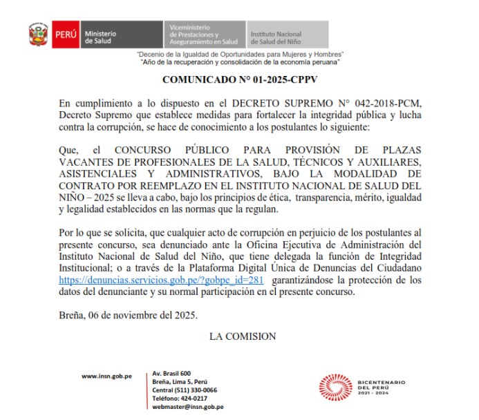 BASES ADMINISTRATIVAS DEL CONCURSO PÚBLICO PARA PROVISION DE PLAZAS VACANTES BAJO LA MODALIDAD DE CONTRATO POR REEMPLAZO - DECRETO LEGISLATIVO Nº 276